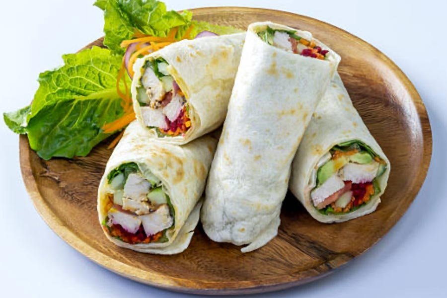 Thinly sliced turkey served in a spinach wrap with lettuce , onion, tomato, cheese and house special vinaigrette.